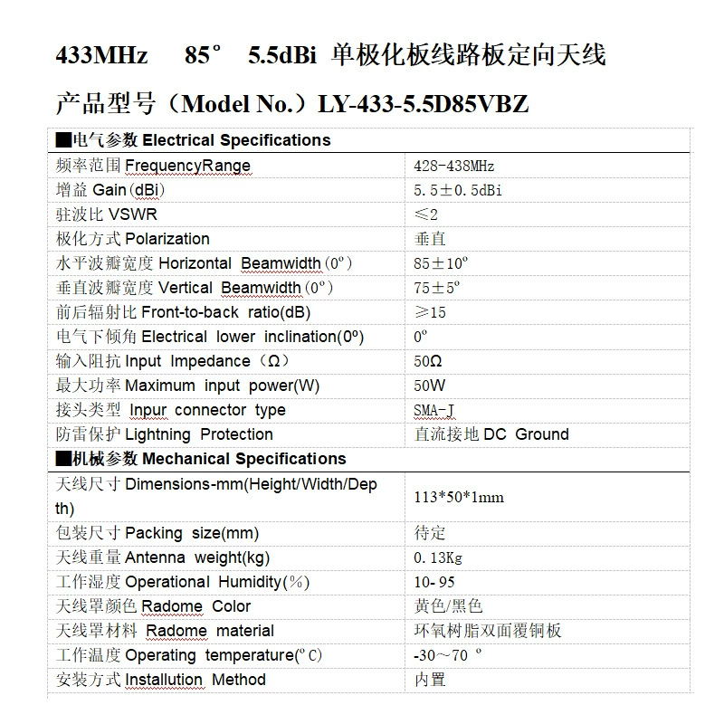 生成物称谓:433MHzGPCBrf射频外置无线16dBi单极化板各线路板专向外置无线