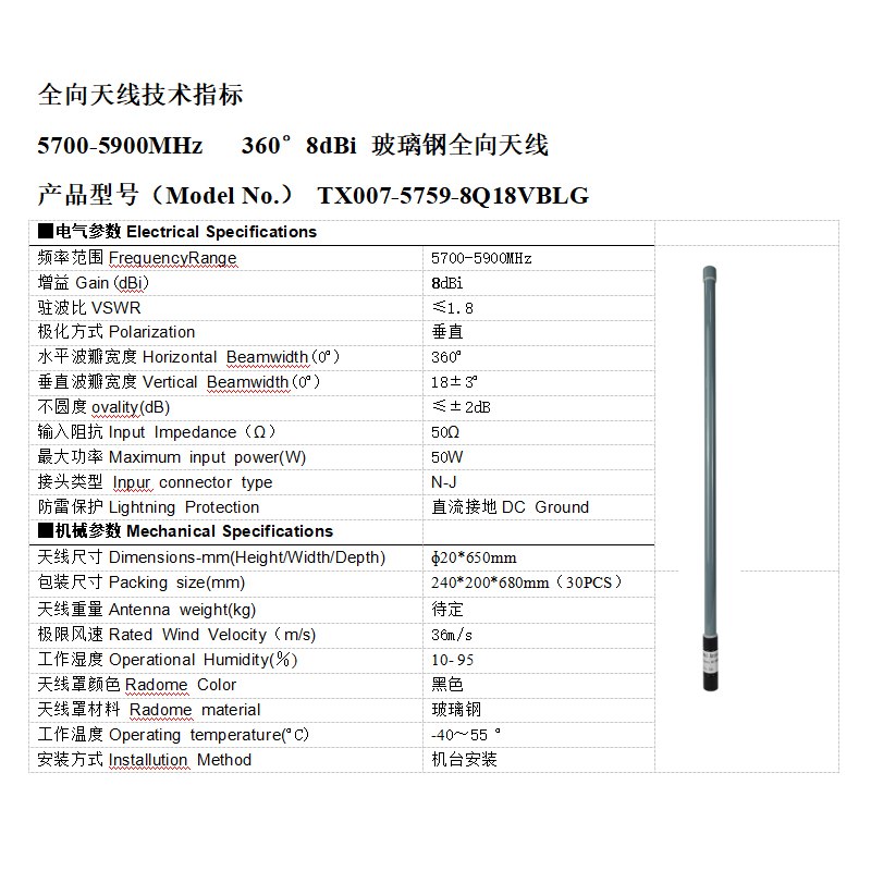 货物光环:全向波璃钢全向无线5700-5900MHz身负式无电脑机反制装配 波璃钢全向无线