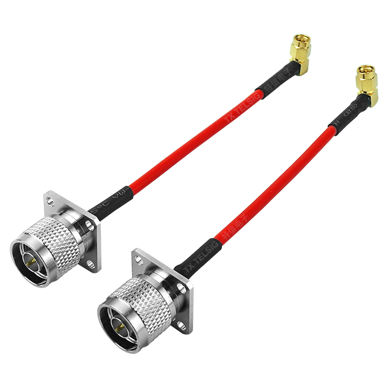 副产物名称:N公针转SMA弯公针防渗水卡箍镀银RG402微波射频呼叫转移毗连线